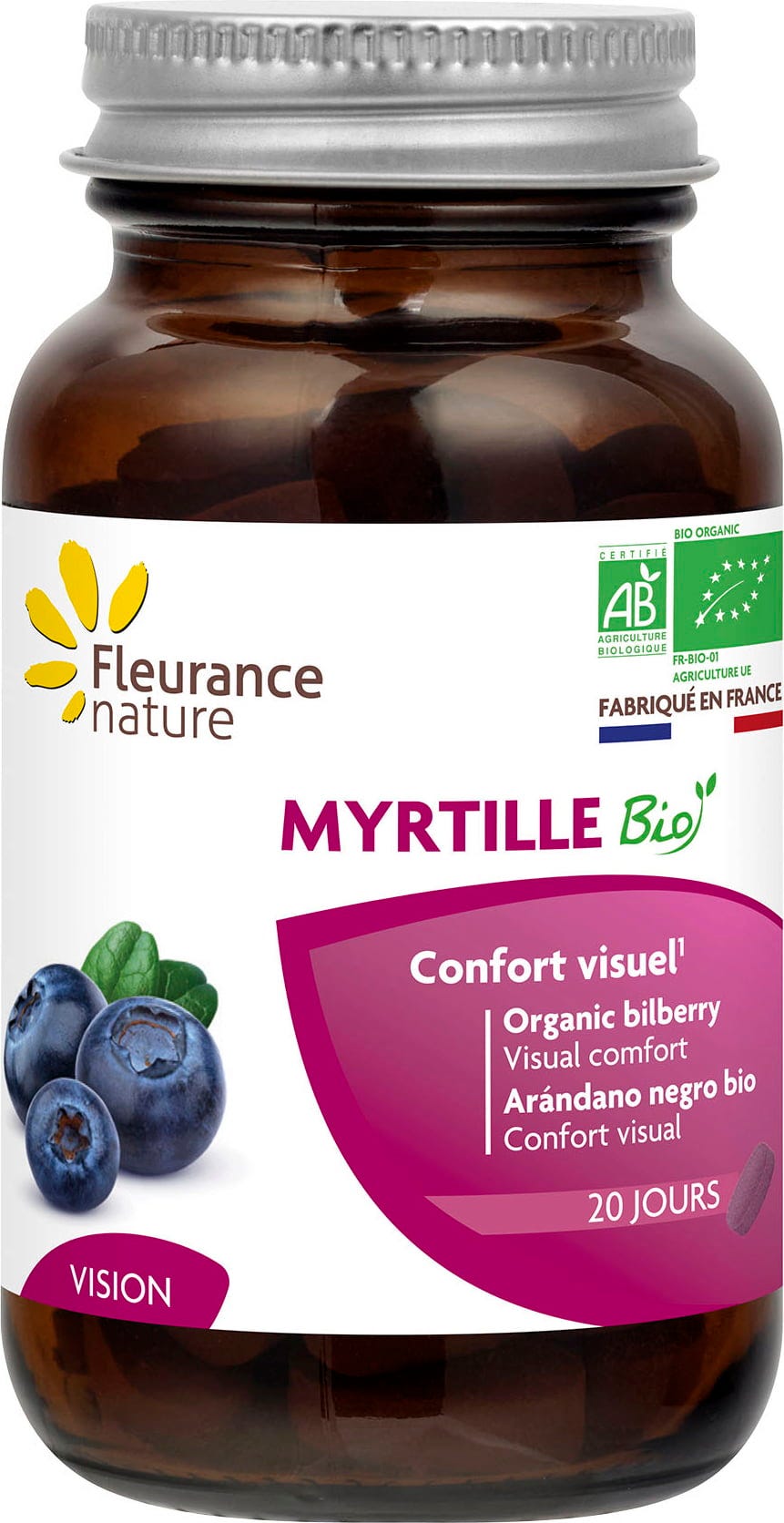 Myrtille von Fleurance nature enthält Saftpulver aus der Frucht der Heidelbeere (Vaccinium myrtillus). Die Inhaltsstoffe stammen zu 100 % aus kontrolliert biologischem Anbau. Jede Tagesdosis liefert natürliche Pflanzenstoffe wie Polyphenole und Anthocyane. Die Tabletten sind für eine vegetarische und vegane Lebensweise geeignet.